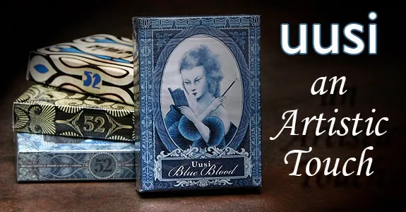 Linnea and Peter had been collecting Playing Card decks for years as inspirational objects, and in 2012, decided to design a custom deck of their own. That deck was Blue Blood, which was launched and funded on Kickstarter with huge success and accolades from their backers. Uusi had brought a long-missing Fine Art feel back to the playing card community and opened the door for a creative surge that is still going strong today.