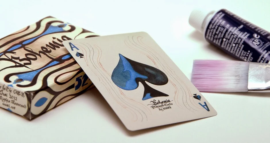 With the success of their first deck, Uusi released their second deck, Bohemia. Its bold “Street art meets Baroque” hand-painted design was release to much of the same success and acclaim which Blue Blood had garnered. With the release of Bohemia, the studio also revealed that it and Blue Blood were the first decks in a planned six deck series, Bohemia being the second deck in the series.