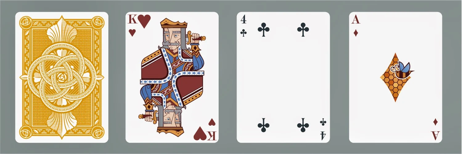 I think almost everyone grew up playing with a deck of cards. I've got a ton of fond memories of just playing card games with cousins and family member. Having a lot of friends from around the world now, it's interesting to see which deck they grew up with and how special that deck is. Growing up in Canada, the really good decks were the classic Bicycle Riderback and the Bee deck. There was always something about the Bee Ace of Spade that spoke to me. It's got this beautiful design that feels timeless. So when I decided a deck, I wanted to pay homage to something that was part of my childhood as well as pay homage to other great designs out there in European decks. It's a call back and a thank you to what's come before me as I try to step forward.
