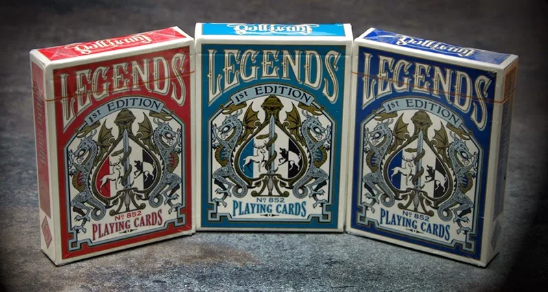 Simply amazing cards, as a novice in magic and cardistry it struck me as impressive that "I" could tell the difference everyone was talking about. The intricate "Dragon" back design is just incredibly detailed and eye catching. The somewhat standard faces help keep the look of the deck familiar for working professional. The handling of the deck is were most will be impressed, they are just very smooth and easy to work with. Just beautifully designed and full of amazing secrets to discover, if you've hesitated on trying the Legends I would highly recommend giving them a shot, you won't be disappointed.