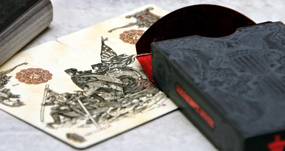 Just an amazing deck and easy to see why it's still on so many collector lists. Not easily found, but well worth the hunt. The stunning embossing along with a hint of bright red foil just sets this deck apart, as well as Jackson Robinson's signature style for this series and the fully foiled tuck interior makes this an amazing center piece to any collection.