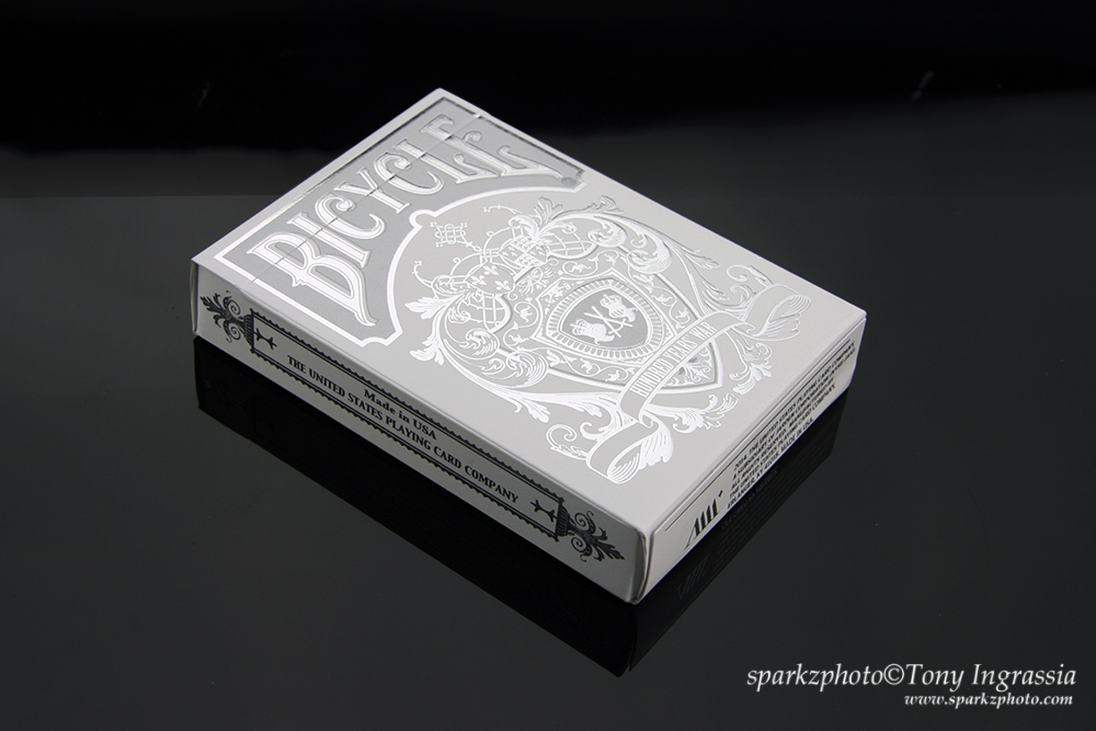 Inspired by the Hundred Years War between England and France the deck takes many elements of the time and incorporates them very well into a beautiful and detailed design. The decks were printed by USPC, 5000 decks of each the Silver and Black was produced. The tuck cases are stunning with some really nice deep embossing as well as silver and gold foil highlights respectively. The cards themselves are completely custom and both decks feature metallic inks on the Hearts and Diamond suites as well as the details on the Aces and Jokers.