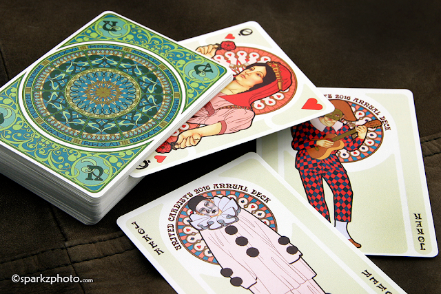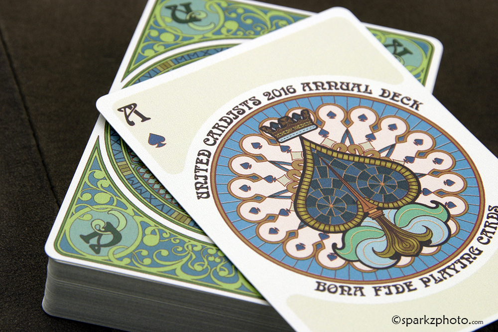 The 2016 United Cardists annual deck is NOUVEAU by Karin Yan of Bonafide Playing Cards in Barcelona. The NOUVEAU playing cards are inspired by the historical and mythological heroes and heroines traditionally featured in the French playing cards in the 16th century.