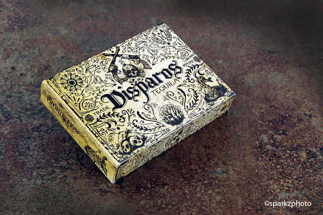 The cards themselves have a worn look that is pulled off by a nice tattered edge look as well as the sketchy design and color palette. The back design is mirrored, but the slightest of miscut and it does become a subtle one way back because of the random "Border" design element. The courts continue with the "Sketched" look and depict various Mexican inspired characters, they are a one way design with the cards "Name" printed across the bottom in a bit of a banner design, but retain the corner pips. The spot card pips have that "Just Drawn" look that works well with the deck and the custom Ace of Spades has a nice skeletal design. The Jokers, much like many in the set, aren't specifically designated as such, but Disparos "Jokers" feature two lower-centered bottle design with the shot glass shown full in one, and empty in the other.