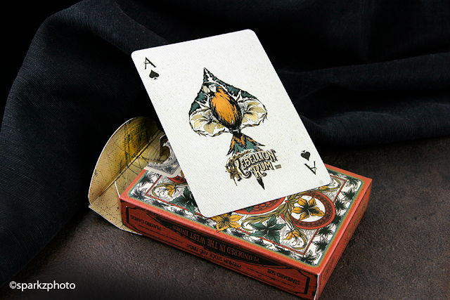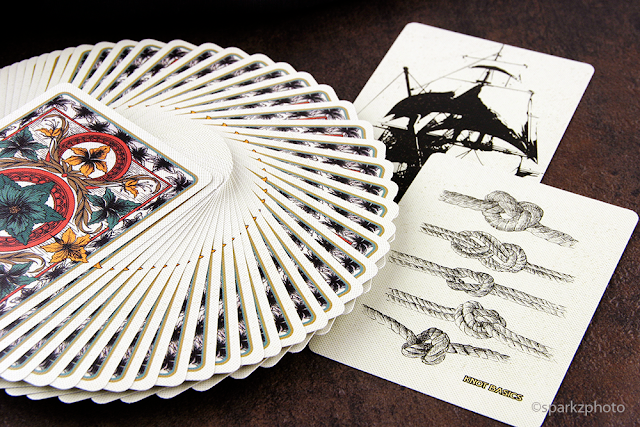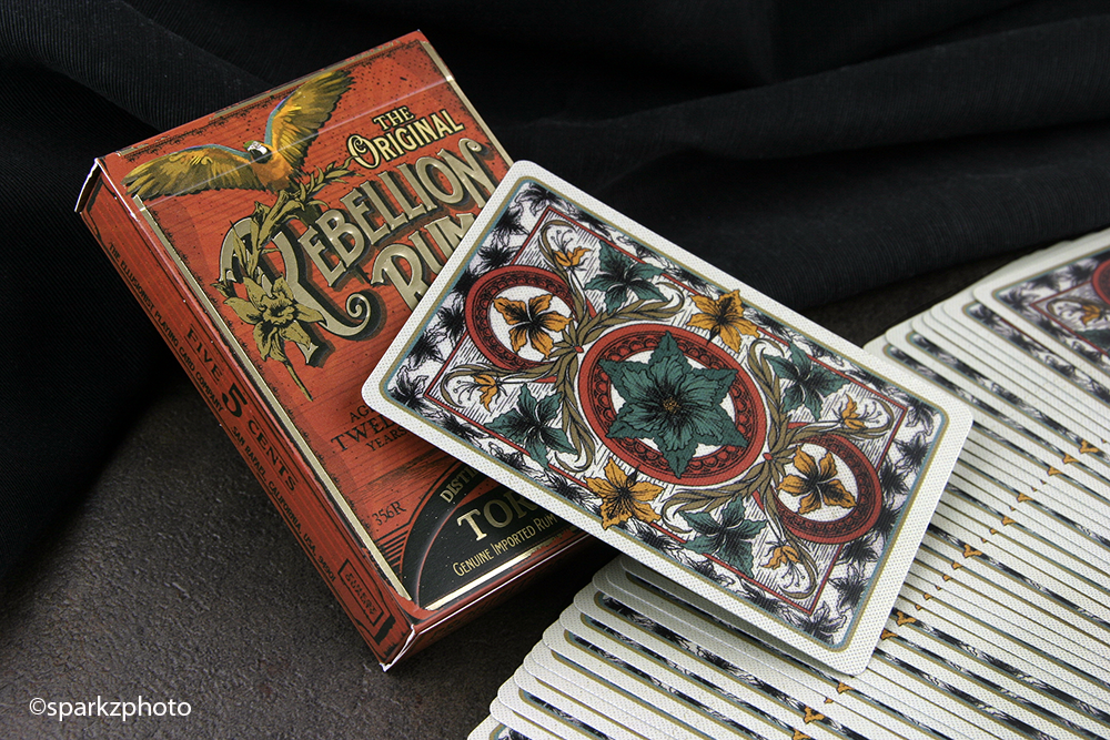 Rebellion Rum was the deck that got my attention when the series was first announced by Ellusionist, and I’m happy to say, it’s by far my favorite deck in the series now that it’s been released. The deck does a great job of not only capturing a Caribbean vibe with some of its elements, but also sparks imagery of a “Pirates life for me” feel when you fan through the deck.